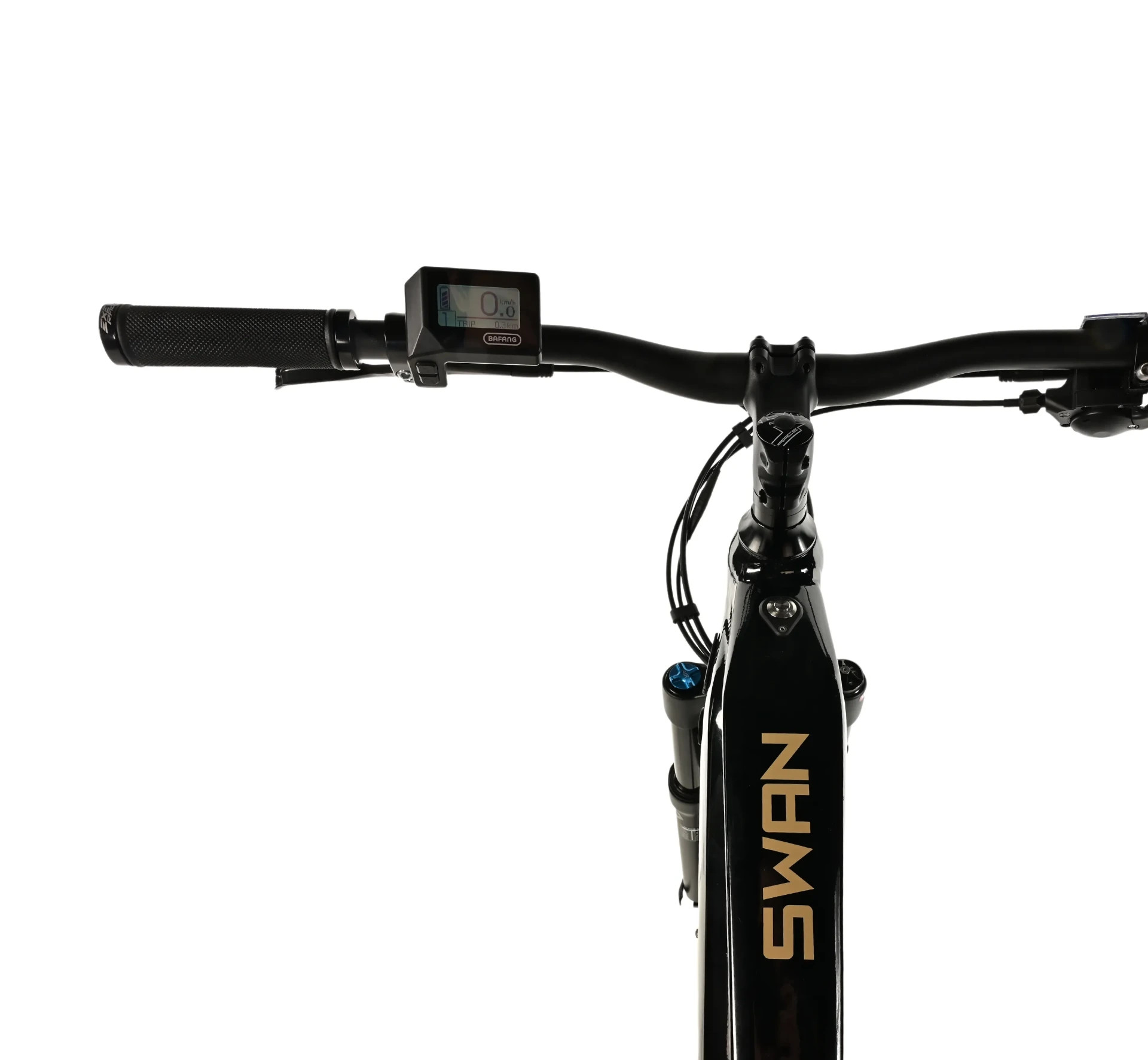 E-bike SWAN je vybaven přední odpruženou vidlicí UDING AIR, která zajišťuje pohodlnou a bezpečnou jízdu v terénu.